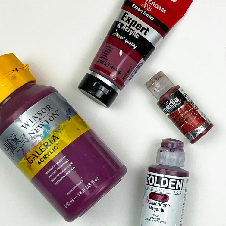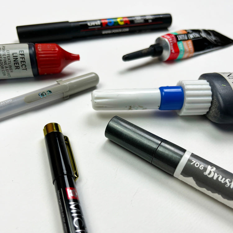 Acrylic paint is the most commonly used paint for me to apply color. In any form, the liquid inks, the markers or just the paint from a jar. All of them can be used interchangeably.