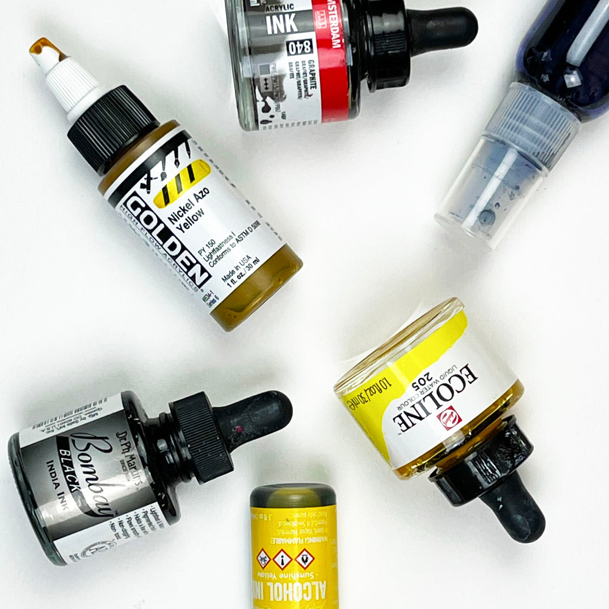 Inks come in many forms. Actually, all ink is just a little bit different. You can apply them in different ways, but it is important to know what the properties are.
