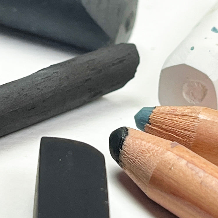 Pastels or the chalk-like application of similar materials are wonderful to work with. Just because they are so soft. Nice for setting up work or to soften sharp lines.